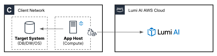 The Data Gateway does not require a port to be opened at the host and instead relies on outbound requests to the Lumi AI platform.