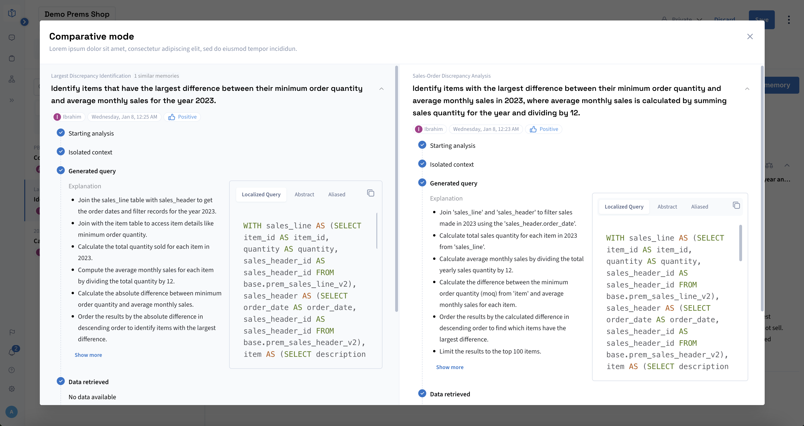 Similar memories alternatively can be compared in a side-by-side view for more direct A/B comparison with the target record.