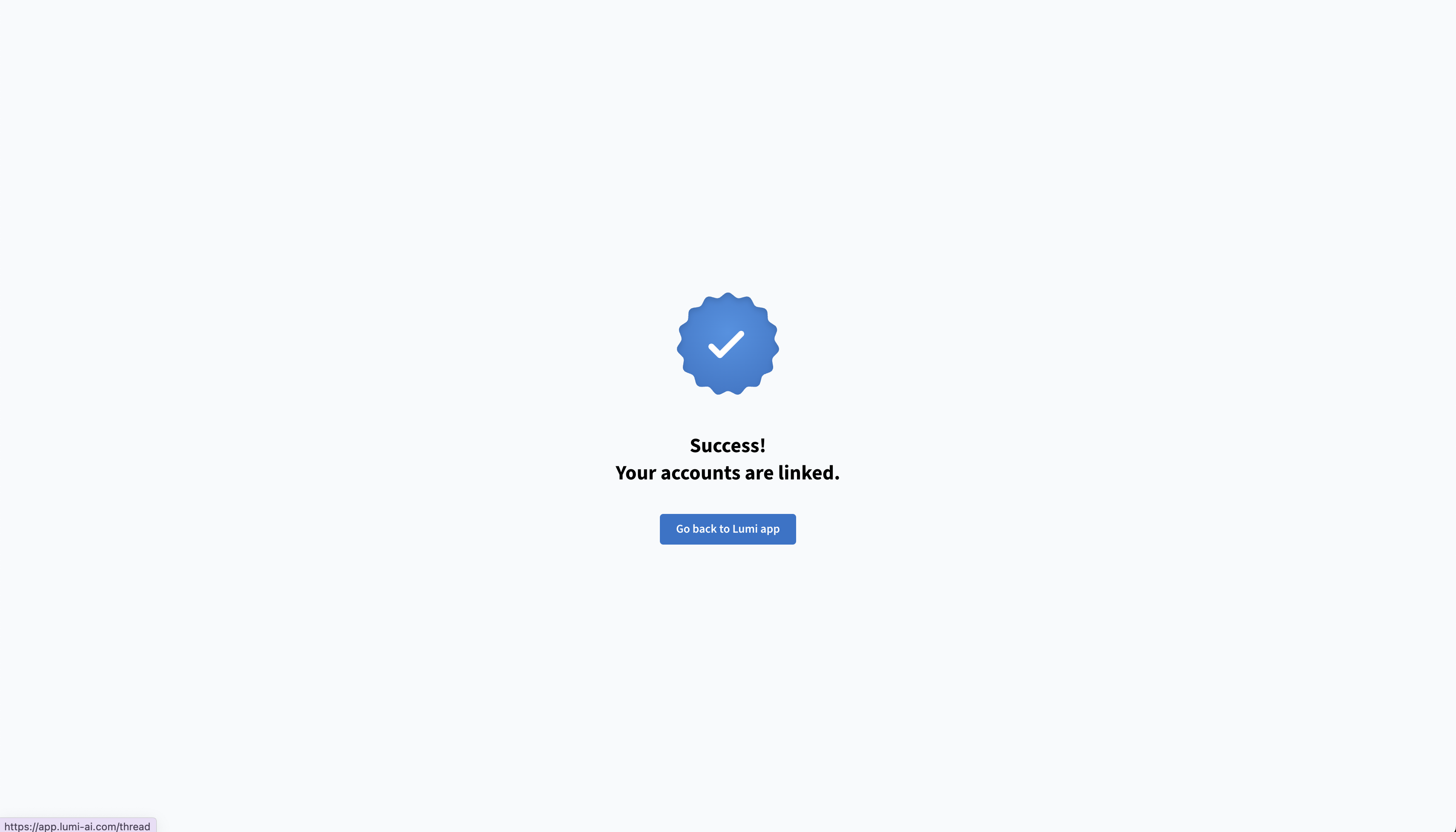 You will be prompted to sync your account. Click and follow actions to complete steps. You may need to log into Lumi AI in the web app if you are not logged in already.